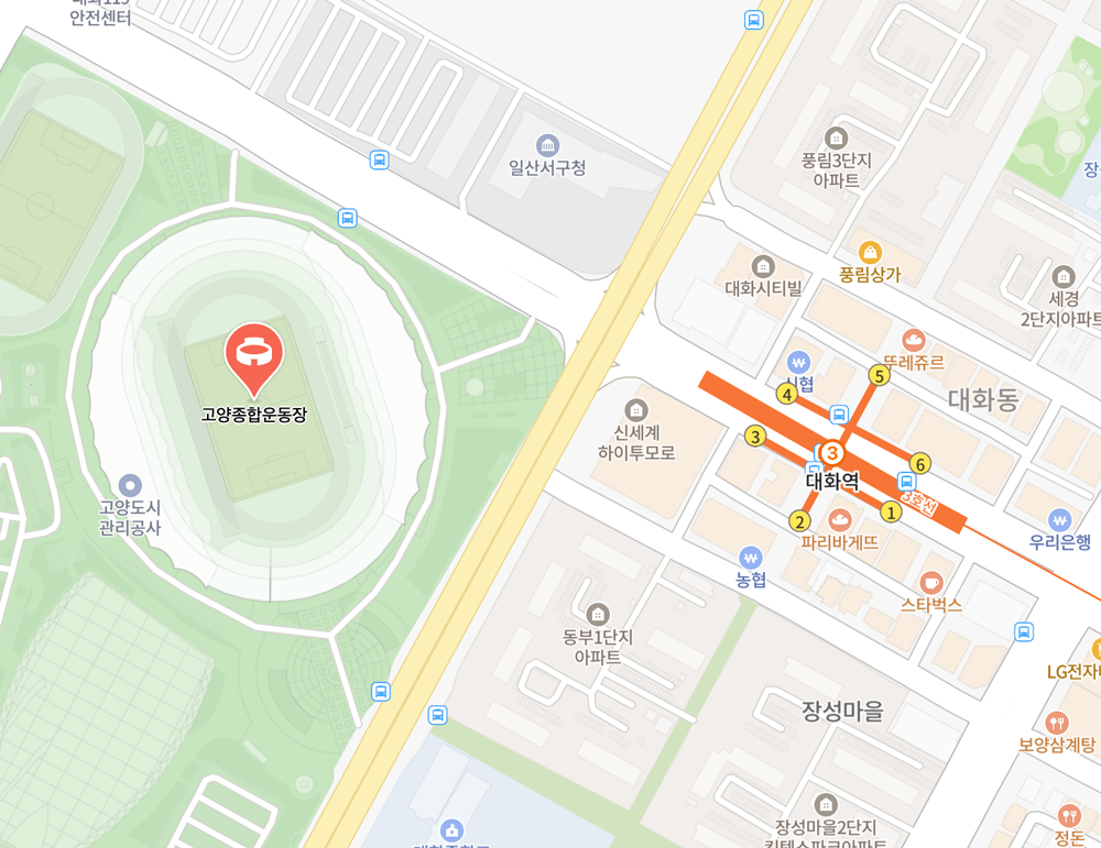 고양 종합운동장은 대중교통으로도 쉽게 접근할 수 있어 대중교통을 추천한다.